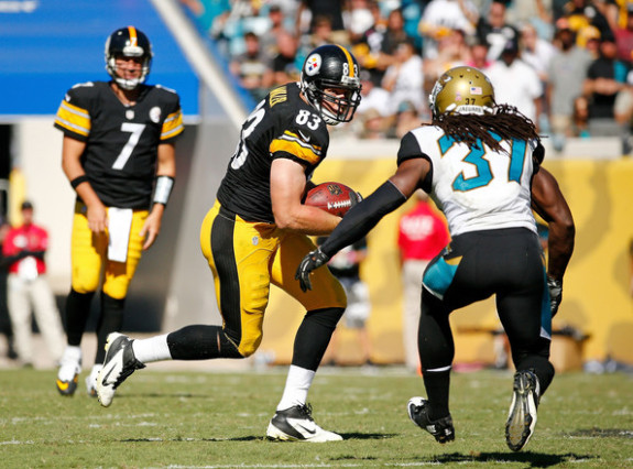 Heath, as in Miller. Fans love to chant his name. He has been a stable force for the Steelers offense over the years. The trouble is this: Pittsburgh and Roethlisberger aren’t getting him as involved in their offense this season. Miller caught a nice pass on a third-and-two where no one was covering. Jacksonville didn’t even see him. His catch resulted in a needed first down.