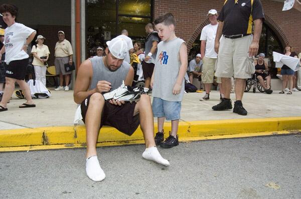 #ThrowbackThursday 07/30/06: Ben signs his cleat for a little fan who helped him carry his shoulder pads at TC. pic.twitter.com/1EvMwJX8IM