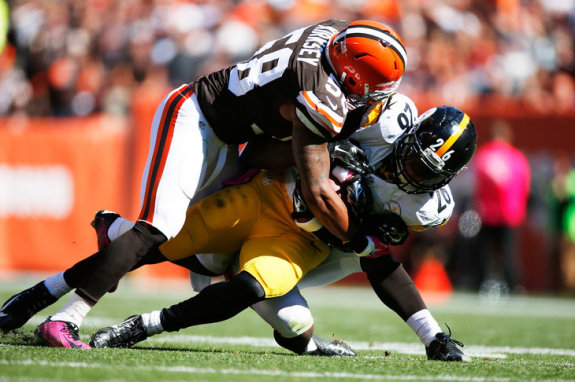 Not enough pressure. Not enough aggressiveness. Coverage was flat. Not enough splash plays. Adjustment was not made to prevent pass plays down the field. The defensive line and linebackers were defeated by the Cleveland Browns front five over and over despite many stunts and blitzes they tried. Brain Hoyer only had to throw 17 passes against the Steelers defense because the game began to get out of hand sooner rather than later. Grade F