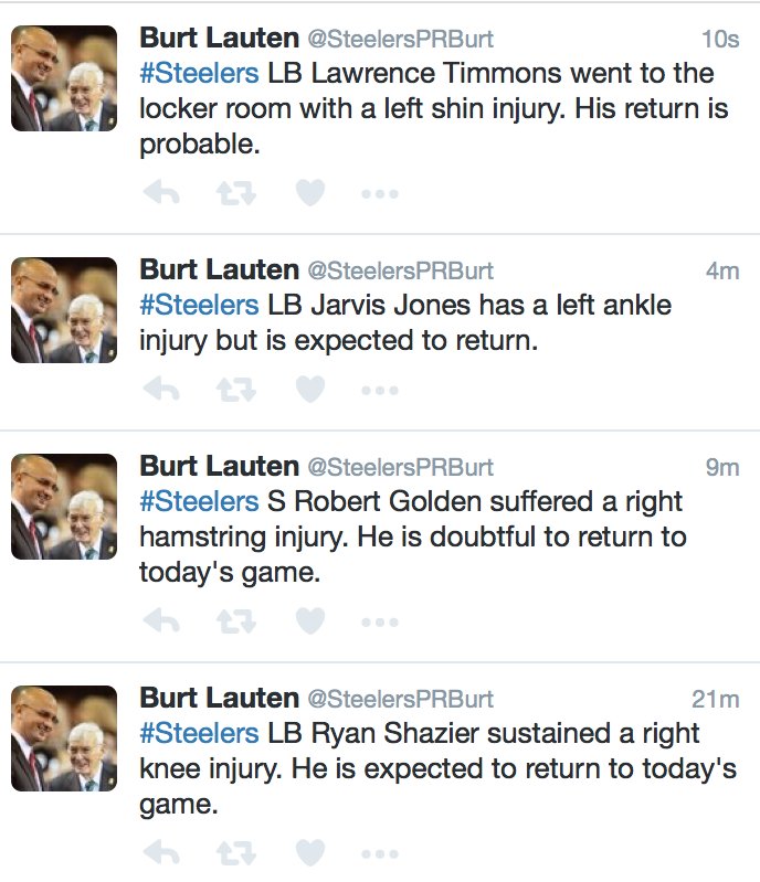 The Steelers trail Philly 10-3 in the second quarter, and so far are getting crushed on defense in terms of injuries. Twitter tells the story of who and what is going on in the City of ‘Not’ So Brotherly Love.
