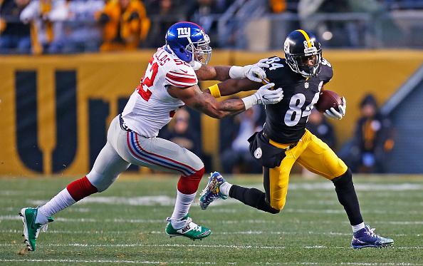 Steelers QB Ben Roethlisberger was 17-for-24 for 204 yards with the touchdown to Antonio Brown, which was the thing of beauty the way he was able to move in the pocket and basically tell AB to go to a spot and he hit that spot. He’s totally outplaying Eli Manning, who has thrown for 70 yards and had that huge pick to Timmons that killed a Giants scoring chance. Ben always does seem more comfortable at home, and this game he’s stepped up against a Giants defense that was playing better, now let’s hope he does that again in the second half with a 14-0 lead.